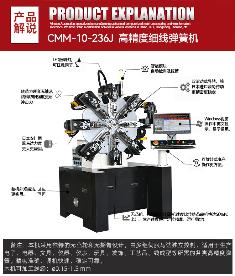 4.全部刀座支持微調(diào)功能,克服無(wú)凸輪機(jī)刀座無(wú)法微調(diào)的弊端,讓高精度彈簧調(diào)試更便捷更精準(zhǔn)。