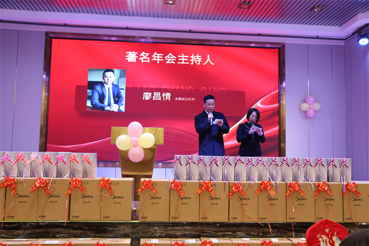 晚宴開始,永騰派出了有著多年年會主持經(jīng)驗的永騰副總經(jīng)理廖昌情先生擔(dān)任主持人。